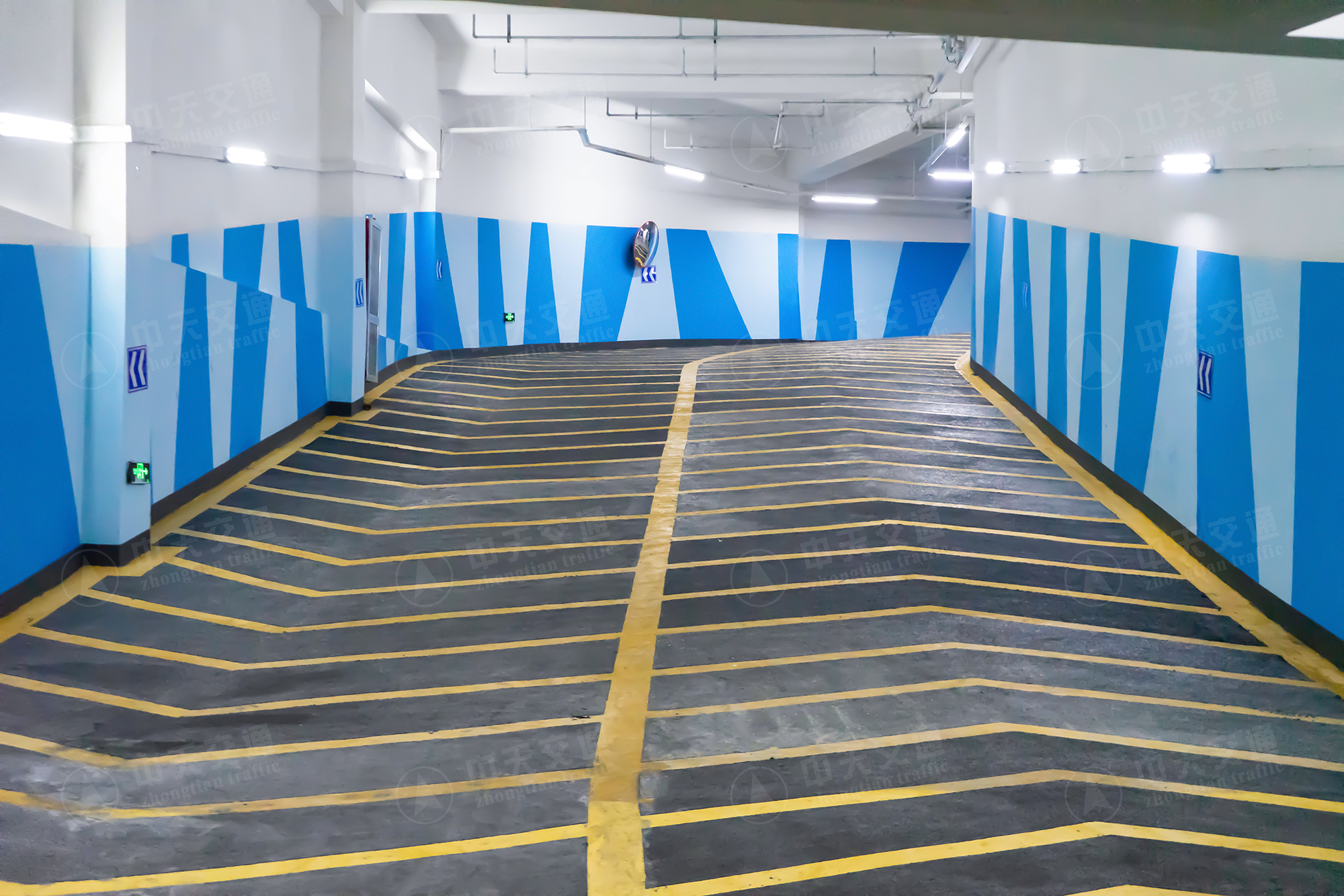 施工类型:车位:金刚砂+环氧地坪光面;车道:金刚砂+环氧地坪橘纹;坡道:无震动止滑坡道