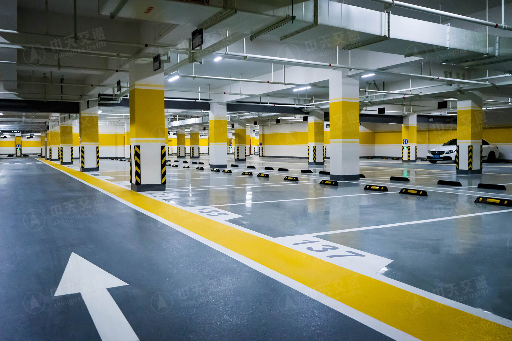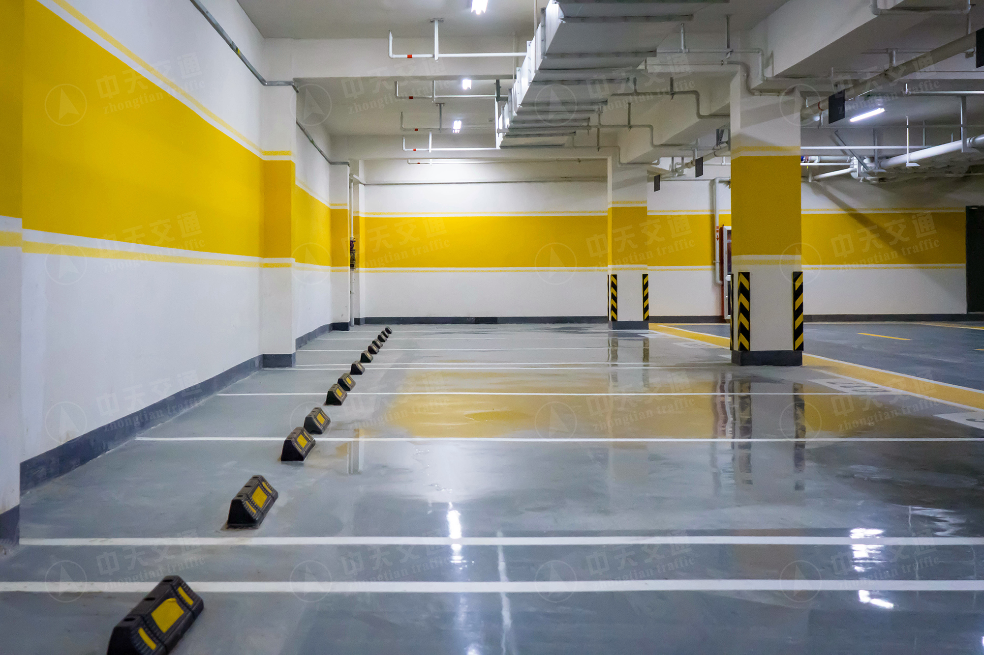 施工类型:车位:金刚砂+环氧地坪光面;车道:金刚砂+环氧地坪橘纹;坡道:无震动止滑坡道
