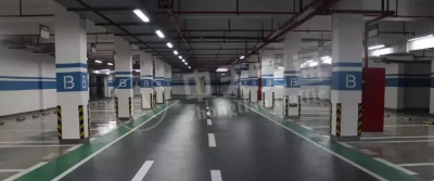 由于行车通道行车频繁,所以行车通道采用1.5mm橘纹的橘皮环氧砂浆地坪,我们施做的橘皮环氧砂浆地坪的耐磨度是普通混凝土的285%,具有极好的耐磨性。在节约车库空间制作成本的同时也保证了车库地坪的使用寿命。